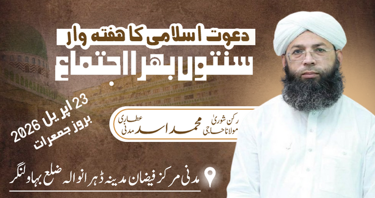 آج رات مدنی چینل پر رکن شوریٰ حاجی اسدعطاری ہفتہ وار اجتماع میں بیان فرمائیں گے