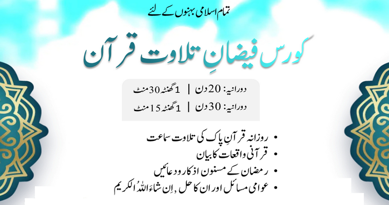 بیرونِ ملک کی تمام اسلامی بہنوں کے لئے کورس ”فیضانِ تلاوتِ قرآن “ مرتب کیا