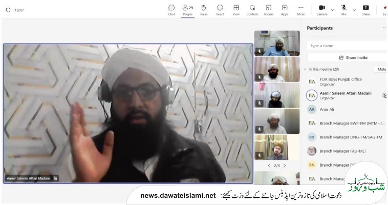 میٹنگ میں شعبے کے صوبائی ذمہ دار مولانا عامر سلیم عطاری مدنی نے ماہانہ میٹنگ کے