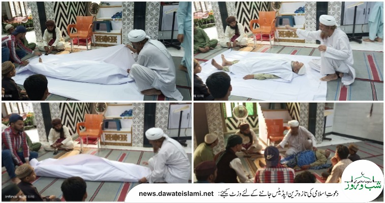 کے دوران شعبہ کفن دفن کے ذمہ دار عزیر عطاری نے حاضرین کو کفن کاٹنے، میت کو غسل
