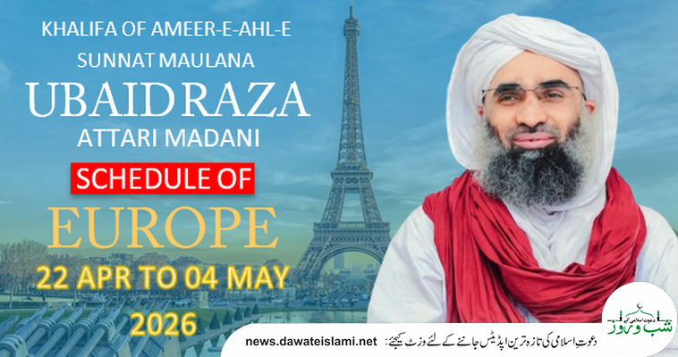 العالی 22 اپریل تا 4 مئی 2026ء تک یورپ (EUROPE) کے دورے پر تشریف لے جارہے ہیں جہاں یورپ کے مختلف ممالک میں ہونے والی دعوتِ اسلامی کی