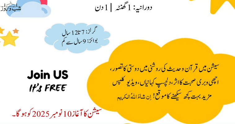 صحبت کے نقصانات اور دلچسپ ایکٹیویٹز کے علاوہ اور بھی بہت کچھ سیکھنے کا موقع ملےگا ۔ ان شآءَ اللہُ الکریم